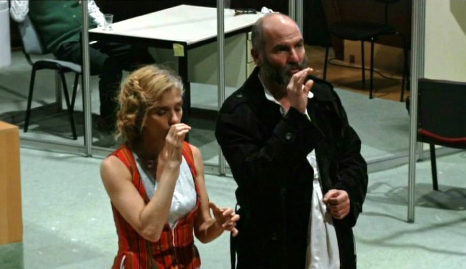 Ας ξεκινήσουμε την αναφορά μας από την εργασία της Αποστολίας Παπαϊωάννου, «Ο Ακύλλας Καραζήσης συναντά τον Χόρβατ με πίστη, αγάπη, ελπίδα» (2016), Ελλάδα, έγχρωμη 65΄. Η σκηνοθέτης ακολουθεί το γνωστό ηθοποιό και σκηνοθέτη του θεάτρου. Βλέπουμε τον Ακύλλα Καραζήση να δουλεύει με τους ηθοποιούς του, να τους μαθαίνει να μιλούν, να κινούνται στη σκηνή, να αναπαριστούν ένα έργο δύσκολο που μιλά, με αλληγορικό τρόπο για την πίστη, την αγάπη και την ελπίδα. Η ταινία αποδίδει το κλίμα της εργασίας των ηθοποιών και του σκηνοθέτη τους, παρεμβάλλονται τα σχόλια του Ακύλλα Καραζήση, βλέπουμε τελικά ένα μικρό κομμάτι της παράστασης που έχει ανέβει στο θέατρο. Η Αποστολία Παπαϊωάννου μας βάζει στο κλίμα της παράστασης, στη φιλοσοφία της τέχνης του Καραζήση, ενώ η αφήγησή της ακολουθεί την κλασική δομή. Η ταινία-ντοκιμαντέρ ξεφεύγει λίγο από την κλασική ντοκιμαντερίστικη αφήγηση και αναδομεί το θεατρικό κείμενο, χρησιμοποιώντας όλα τα υλικά της, με όμορφο τρόπο, στο μοντάζ.