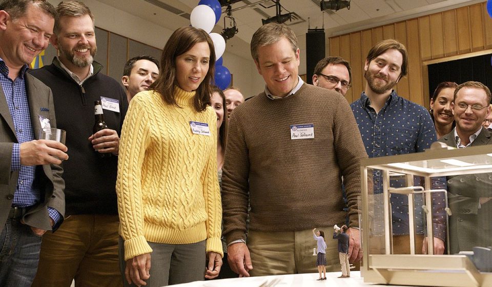 Ένα ζευγάρι αποφασίζει να ακολουθήσει την επικρατούσα λογική: όλοι οι άνθρωποι θα πρέπει να μικρύνουν για να χωρέσουν στη γη, λόγω μεγάλης κατοίκησης. Αυτό όμως τους δημιουργεί προβλήματα που δεν είχαν φανταστεί. Ταινία επιστημονικής φαντασίας του Alexander Payne, ελληνικής καταγωγής και, λόγω Φεστιβάλ Θεσσαλονίκης, γνώριμου του ελληνικού κοινού.