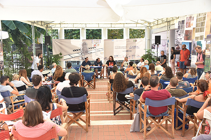 Οι σκηνοθέτες των ταινιών που προβλήθηκαν χθες βράδυ, διεκδικώντας τα βραβεία του 41ου Φεστιβάλ Ταινιών Μικρού Μήκους Δράμας, συμμετείχαν σήμερα σε μια απολαυστική συζήτηση με τους κριτικούς κινηματογράφου Κώστα Κωνσταντινίδη και Κωνσταντίνο Καϊμάκη, αλλά και με το κοινό του Φεστιβάλ.