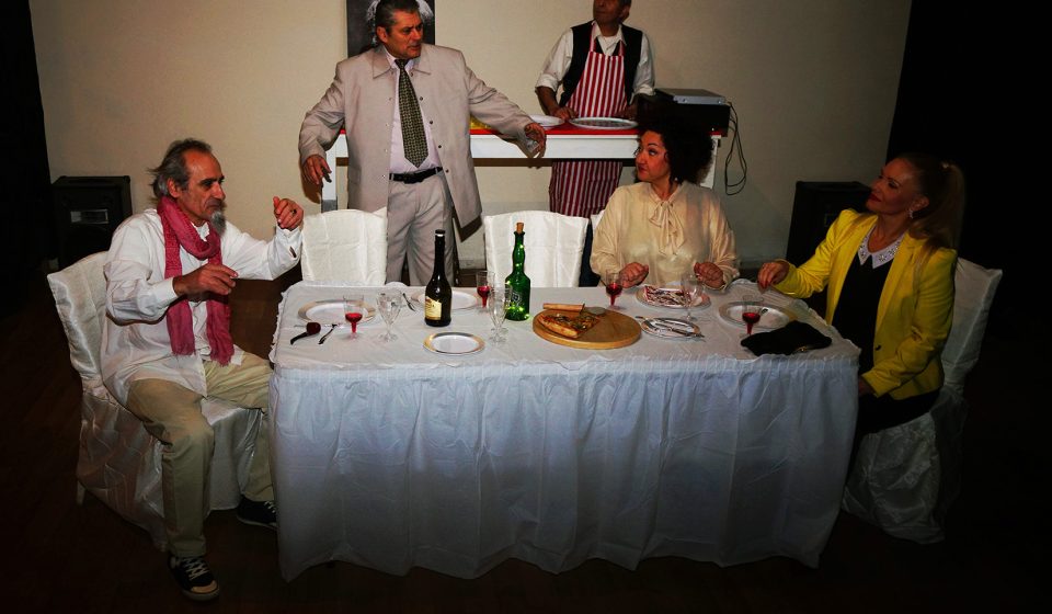 Το έργο έχει πολλές ανατροπές, μέχρι το τέλος του, έτσι δημιουργείται ρυθμός που αρθρώνει το θεατρικό λόγο, κρατά την προσοχή του κοινού ενώ, συγχρόνως, το διασκεδάζει. Η πρώτη διαμάχη είναι μεταξύ των γυναικών και των συζύγων τους. Εκεί αυτός ο πλούσιος άντρας θα παίξει το μεσσία για να λειτουργήσει λυτρωτικά και να κερδίσει το παιχνίδι. Στήνει μία δίκη όπου θα δικαστεί αυτός που είναι υπεύθυνος για όλες αυτές τις διχόνοιες και τους τσακωμούς, ένας φιλόσοφος. Επειδή όμως δε ζει, στη θέση του κάθεται ο ιδιοκτήτης της πιτσαρίας. Οι εναλλαγές είναι και εδώ αρκετές, η διάδραση με το κοινό είναι τέτοια που όλοι οι θεατές παίζουν σε αυτή την παράσταση. Το τέλος όμως είναι λυτρωτικό για τον υγιώς σκεπτόμενο άνθρωπο.