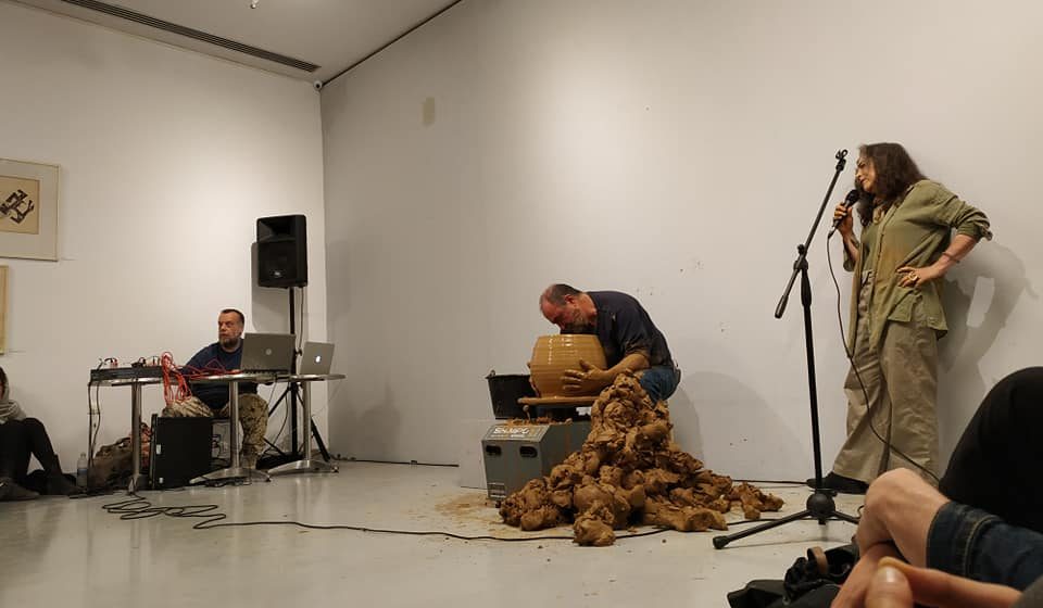 Η Σαβίνα Γιαννάτου και ο Κωστής Δρυγιαννάκης αναλαμβάνουν να κάνουν το χώμα να μιλήσει. Η πρώτη με τα υπέροχα φωνητικά της είναι σαν η πέτρα να μας μιλά και να μας ψιθυρίζει τις ιστορίες της. Ο δεύτερος με τα ηχητικά του κάνει την πέτρα να μας καλεί να συμμετάσχουμε. Ο κεραμίστας, συγχρόνως, δημιουργεί. Φτιάχνει ένα πολύ όμορφο κεραμικό που νομίζεις ότι ο ίδιος του δίνει πνοή. Είναι αυτός που το γεννάει. Είναι έτοιμο να ψηθεί. Την επόμενη στιγμή το πλάθει και του δίνει μία άλλη μορφή, αυτή που θα έχει μόνιμα ως ωμό έκθεμα.