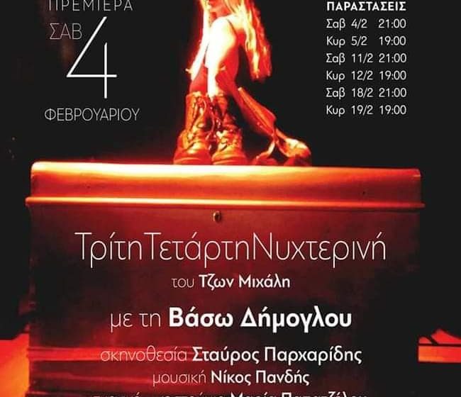 Ημέρες και ώρες παραστάσεων: Σαβ. 4/2 – 11/2- 18/2 ώρα 21:00, Κυρ. 5/2 -12/2 -19/2 ώρα 19:00