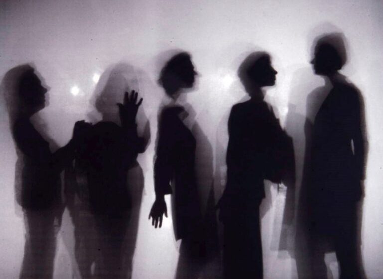 Η κυκλικότητα της ζωής και τα πολλαπλά πρόσωπα της θηλυκότητας αναδεικνύονται σχεδόν ανιμιστικά από το μη ανθρώπινο: Από τις πτυχώσεις ενός διαδραστικού φορέματος που «ζωντανεύει» με το φως. Από την αυστηρή μαύρη στολή -μια ανοιχτή αναφορά στο «Κορίτσι με τα μαύρα» του Μιχάλη Κακογιάννη-, τους γιακάδες από ύφασμα ή από κάποιο ευγενές μέταλλο. Απ’ όλα αυτά που φοράμε πάνω από σώματα που ανήκουν ήδη στο παρελθόν για να δώσουμε σχήμα σε έτοιμες ταυτότητες.