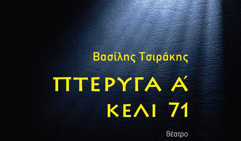 Πως μπορεί κάποιος να δώσει έναν ορισμό για την ελευθερία; Ακόμη πως μπορεί να ορίσει τις ανάγκες του; Δύο ερωτήματα που τοποθετεί με σαφή τρόπο το βιβλίο του Βασίλη Τσιράκη «Πτέρυγα Α΄, κελί 71». Είναι ένα θεατρικό κείμενο του συγγραφέα που εκδόθηκε από τις εκδόσεις Τόπος και αναζητεί σκηνοθέτη και παραγωγό για να «ανέβει» στην θεατρική σκηνή.