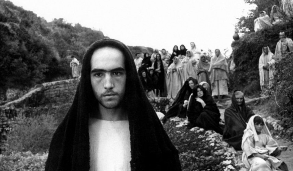 To 1964 ο Πιέρ Πάλο Παζολίνι βρέθηκε στην Ασίζη και τα ευαγγέλια έπεσαν στα χέρια του. Διάλεξε αυτό του Ματθαίου και χωρίς άλλο σενάριο, κατευθύνθηκε με το κινηματογραφικό του συνεργείο στην μικρή ορεινή πόλη της Μπαζιλικάτα στη Νότια Ιταλία. Εκεί, θα κινηματογραφούσε τον Ιησού με έναν τρόπο που θα καθόριζε όσο κανένας άλλος, την εικόνα του στην Έβδομη Τέχνη. Δίνει την αίσθηση πως, γυρνάει το βιβλικό δράμα μέσα από τη ματιά ενός πιστού. Και το κάνει, σε ένα βαθμό. Πρέπει να κοιτάξει κανείς στα σημεία για να δει πως ο Ιταλός σκηνοθέτης, φτιάχνει μια αναχρονιστική, ακόμη και λεπτά αιρετική ταινία για τον Ιησού. Έχοντας κάνει τα πρώτα του βήματα στον απόηχο του ιταλικού νεορεαλισμού, ξέρει ακριβώς ποιον καμβά φυσικότητας να χρησιμοποιήσει, προσθέτοντας τις δικές του, άναρχες πινελιές.
